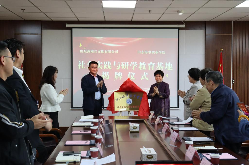为深化产教融合,推动完善实践育人体系构建,4月18日,学校与山东海潮音文化有限公司举行共建社会实践与研学教育基地揭牌仪式。山东海潮音文化有限公司董事长杨春杰、学校校长徐立清出席仪式。