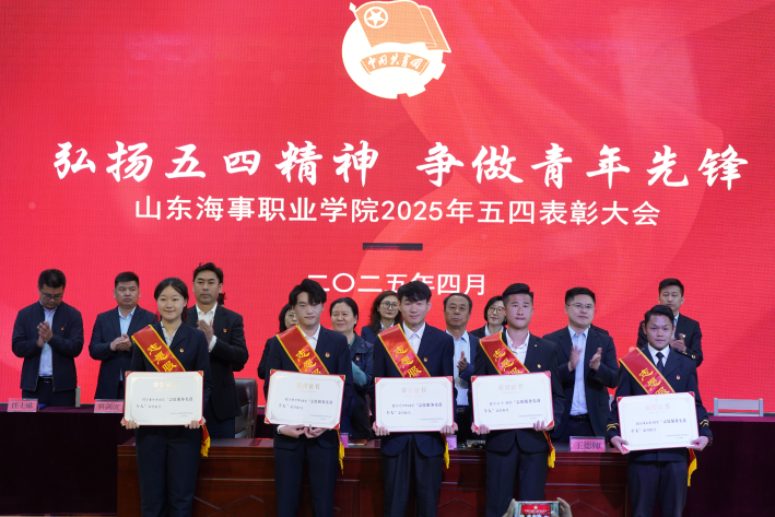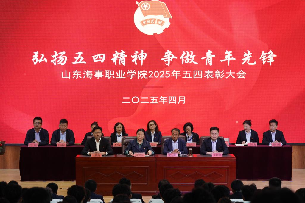 4 月 29 日上午,学校在图书馆报告厅召开2025年“五四”表彰大会,山东海事职业学院党委书记祖爱民,党委委员仉继航、宋志刚、王德帅出席会议。各学院党总支(支部)书记、团总支书记和受表彰的学生代表共400余人参加会议,会议由团委书记刁宁主持。