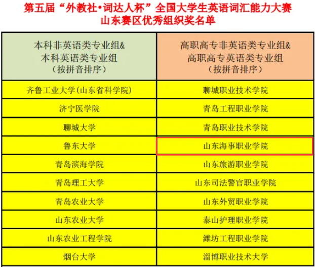 该赛事已入选《2023 全国普通高校大学生竞赛分析报告》观察目录,吸引了超157万名学生报名,覆盖全国30个省市自治区1647所高校。其中,山东分赛区有13.9万名学生参与。我校高职高专非英语类专业组报名人数突破5000人,参赛规模位居全省第一,总获奖数量位列全省第四,且连续四年荣获 “优秀组织奖”。