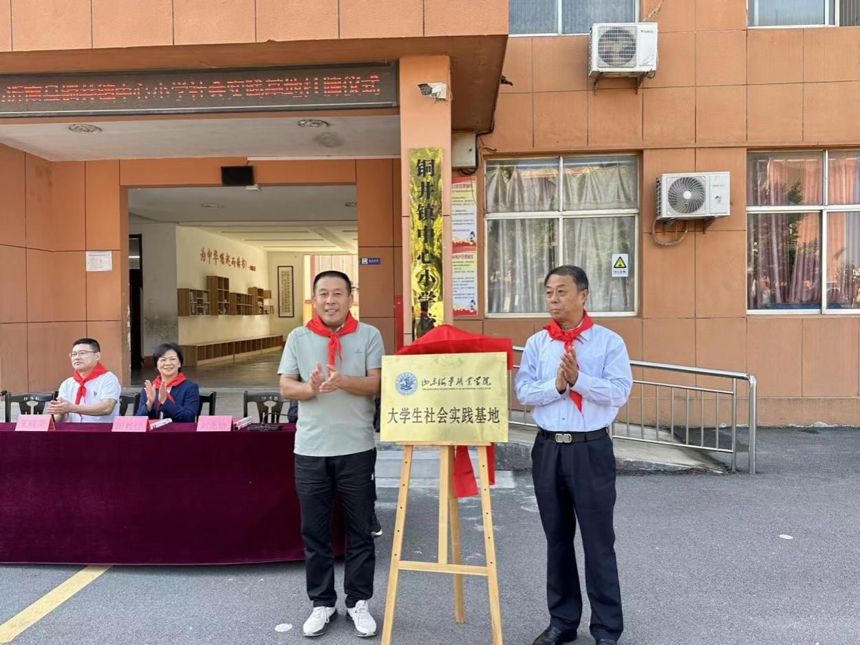 为深化校地教育协同,搭建知识与实践融合的育人平台,充分发挥高校服务地方基础教育的职能,9月25日上午,山东海事职业学院与沂南县铜井镇中心小学社会实践基地揭牌暨共建签约仪式在铜井镇中心小学成功举行。山东海事职业学院党委委员、副校长宋志刚,团委书记刁宁,航空学院党支部副书记田兴红,铜井镇中心小学党支部书记、校长刘光增,党支部副书记姚立志等出席仪式。