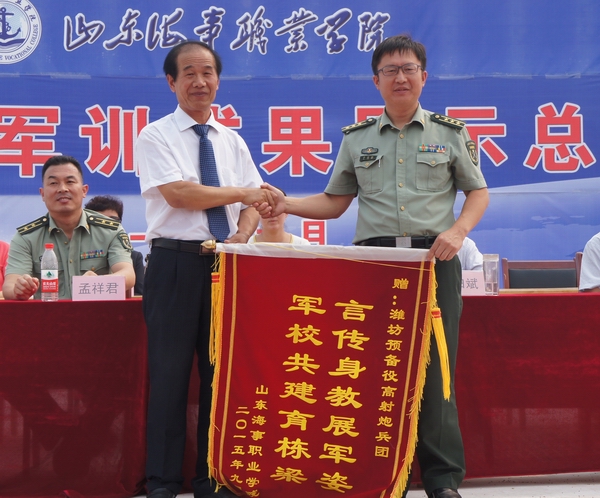 院长王敬良在会上作重要讲话,王院长首先向全体教官和军训办工作人员的辛勤劳动表示感谢;对同学们能够严格按照军训的有关规定,刻苦训练,不怕苦、不怕累,服从命令听指挥的军人作风给予肯定和赞赏。同时,王院长期望同学们在今后的学习生活中,继续发扬中国人民解放军铁的纪律和优良作风,继续发扬军人不怕吃苦、敢打硬仗的精神,继承和发扬军人高度的爱国主义热情,继承和发扬军人高度的爱国主义热情,树立为中华之崛起而发奋读书的伟大理想,树立为中华民族伟大复兴而共同奋斗的历史责任感和使命感。为实现中华民族伟大复兴的中国梦而努力奋斗!