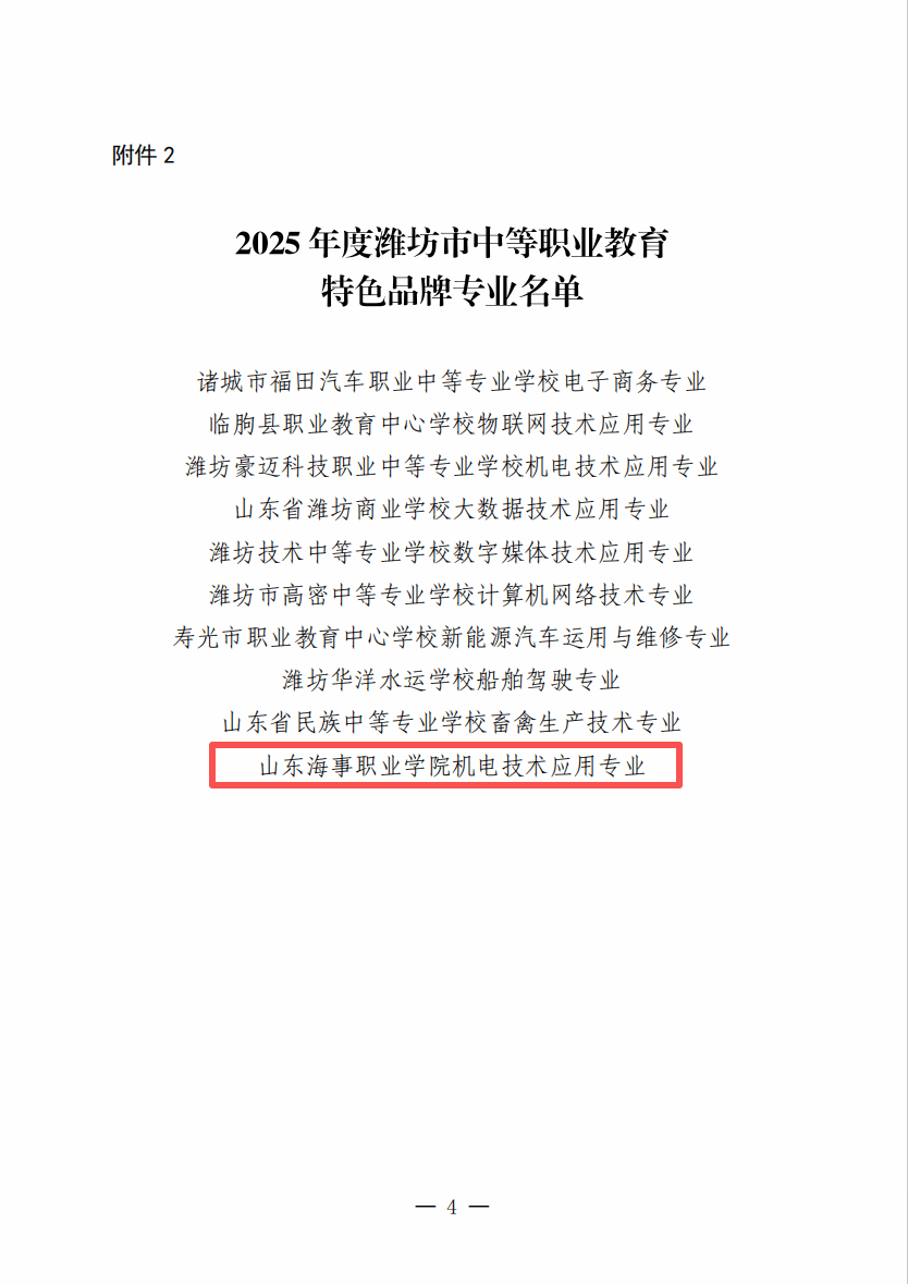 近日,潍坊市教育局正式发布《关于公布2025年度潍坊市职业院校服务经济社会发展成效明显专业群、中等职业教育特色品牌专业的通知》〔2025〕82号,确定我校机电技术应用专业获评为2025年度潍坊市中等职业教育特色品牌专业。 此次获评市级特色品牌专业,是教育主管部门对学校专业建设质量、服务区域经济社会发展能力的充分肯定。
