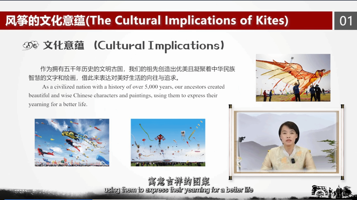 该课程归属于“传统文化”资源类别,由国家级非遗风筝技艺传承人领衔,整合了教授、副教授等多层次师资力量,系统构建了“课程思政+传统文化+双语教学”三位一体的融合教学模式。课程以文化传承为核心,依托数字化教学载体,全面梳理了风筝文化的历史脉络、技艺流派与民俗内涵,运用契合中外受众的双语表达,生动阐释“扎、糊、绘、放”四大核心技艺的传承体系,有效推动非遗文化在跨语言传播中焕发新的活力。