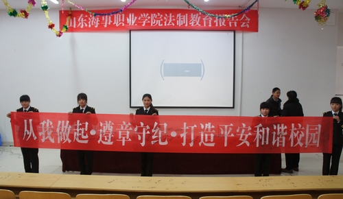 为进一步加强大学生法律安全意识,强化安全纪律月活动的组织落实,营造和谐稳定的校园环境。3月12日下午,我院邀请滨海武警边防派出所为我院学生作法制教育报告会,滨海武警边防派出所沈鸿周教导员、徐文辉所长、学院领导仉继航、学生管理主管领导张锡功以及潍坊媒体各位领导出席大会。学生处副处长张锡功主持了法制教育报告会。