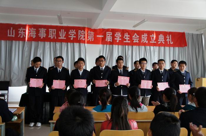会议在庄严的国歌中拉开帷幕,全体嘉宾和与会人员起立并齐唱国歌。随后,宋志刚处长宣读了山东海事职业学院第一届学生会全体成员名单。接下来,在同学们热烈的掌声中,主席台嘉宾为首届学生会成员颁发了聘书。之后,院长助理季星渡发言,对当选人员作了鼓励,并为学生会的将来描绘了一张广阔的蓝图。随后,学生会主席吴英旗、副主席孟岩、李佳峰及各部部长作了就职演说,受到全体与会人员的热烈欢迎……会议也在热烈的掌声中落下帷幕。