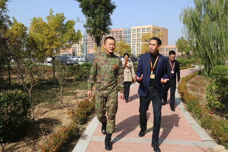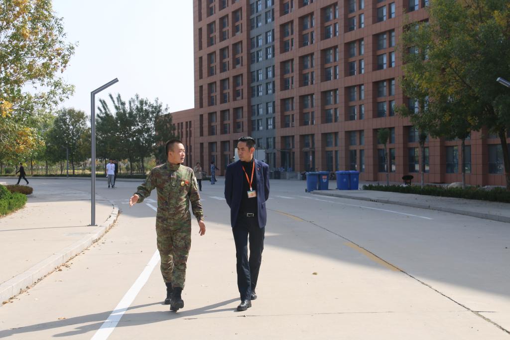 卢长鑫在重游校园时感慨万千,“学校这几年的变化发展太快了,不仅校园环境变得优美了,校园设施也越来越完善,学生们的上课和生活环境越来越好了”,卢长鑫更表示,现在的学生应在一上大学就订好学习计划,有计划、有目标的去完成三年的大学学习生涯。仉继航副校长细致询问了卢长鑫的部队生活情况,并与卢长鑫细致探讨了学校准军事化教学管理模式的改进与完善问题。