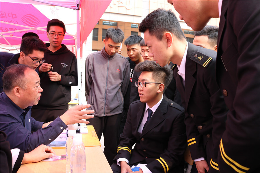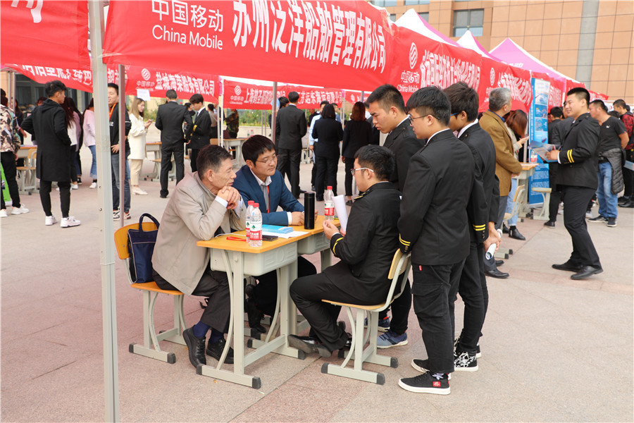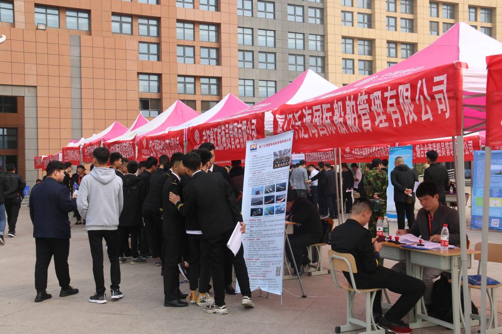 10月23日上午,山东海事职业学院2020届航海类专业毕业生就业双选会在图书馆南广场举行。此次双选会共邀请青岛华洋海事服务有限公司、中国远洋海运船员管理有限公司等近40家航海类企业,共提供就业岗位842个,供需比例达1:4.8。