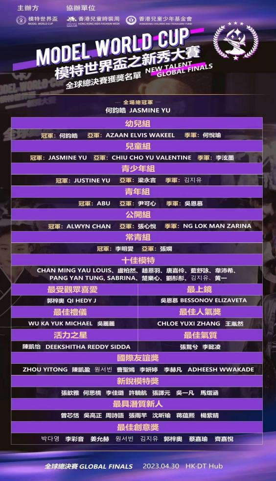 本次“模特世界杯之新秀大赛”在中国香港将军澳举行,是模特界较有影响力的比赛之一。比赛分别设立包括幼儿组、儿童组、青少年组、青年组、公开组和常青组在内的不同的组别,来自中国内地、中国香港、中国澳门、中国台湾、日本、韩国、新加坡、加拿大、印度、泰国、越南等多个国家和地区200余名模特们齐聚于此,一起献上一场规模宏大的时尚盛宴。