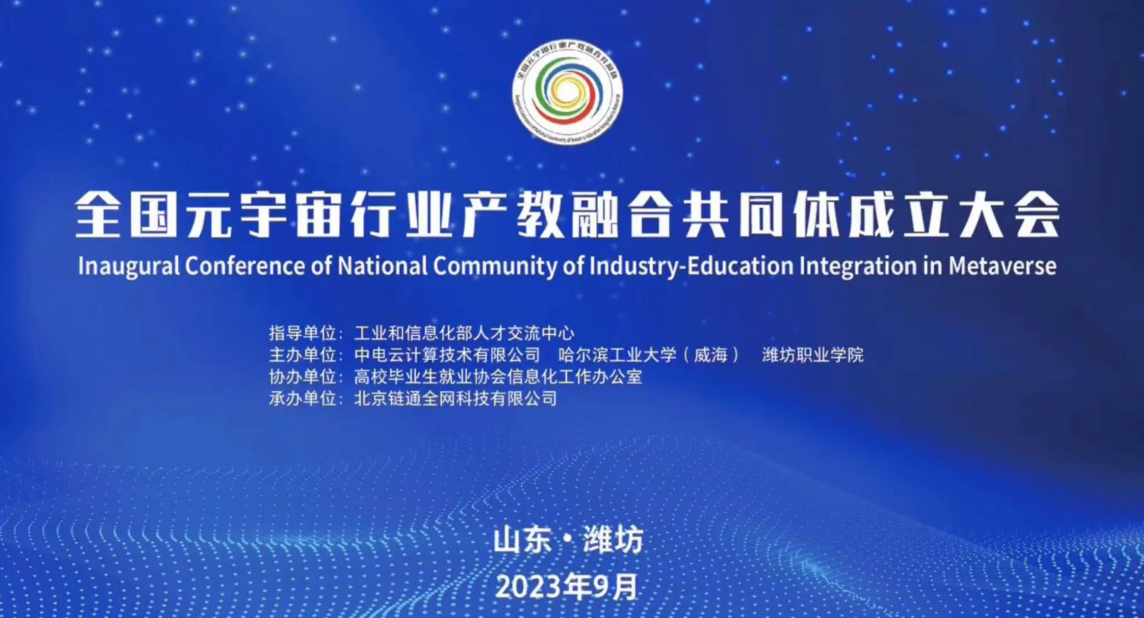 9月16日,由工业和信息化部人才交流中心指导,中电云计算技术有限公司、哈尔滨工业大学(威海)联合行业组织、院校、科研机构、上下游企业等148家单位共同组成的全国首个元宇宙行业产教融合共同体成立大会在潍坊召开,我校作为常务理事成员单位出席。