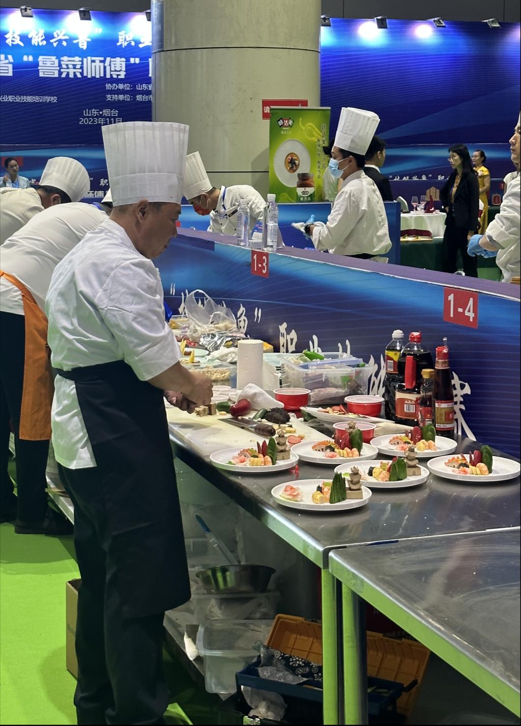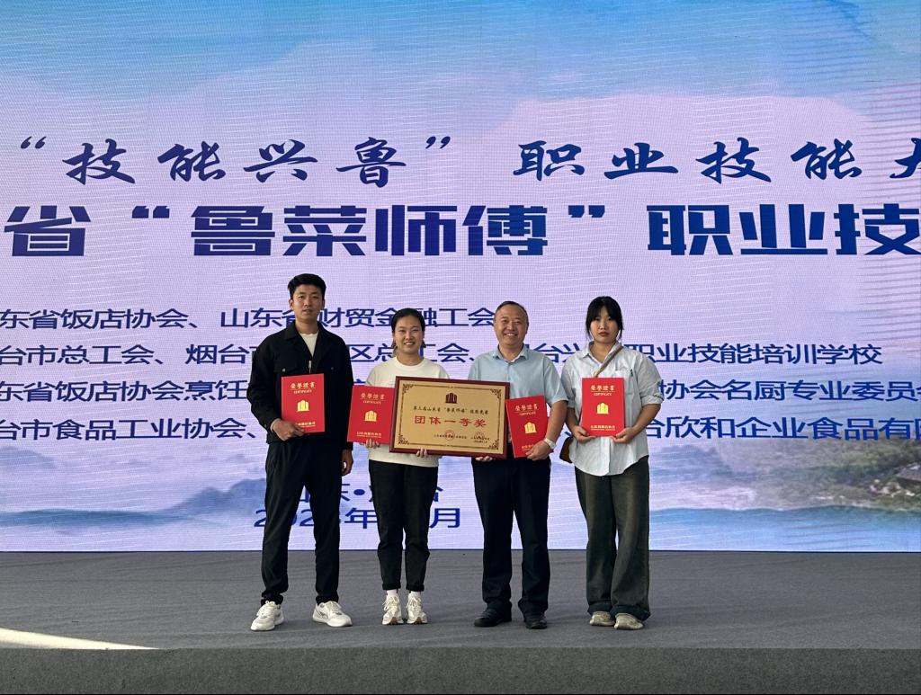 11月4日,由山东省饭店协会、山东省财贸金融工会主办的2023年山东省“技能兴鲁”职业技能大赛第三届山东省“鲁菜师傅”职业技能竞赛在烟台南山国际博览中心圆满落幕。本次竞赛以“新时代、新技能、新梦想”为主题,设中式冷菜、中式热菜、中式面点、餐厅服务4个竞赛项目,经过一天激烈比拼,我校邮轮游艇学院赵日文、姜佳祥、陈增坤、韩秀秀四名老师组成的参赛队伍荣获团体一等奖。