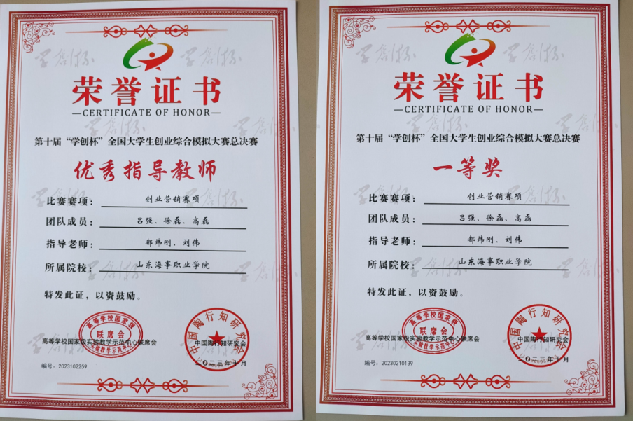 近日,2023年第十届“学创杯”全国大学生创业营销赛项全国总决赛成绩公示,我校港航管理学院学生吕强、徐磊、高磊组成的“梦想合伙人”队斩获全国一等奖!指导老师都炜刚、刘伟被评为“优秀指导教师”。
