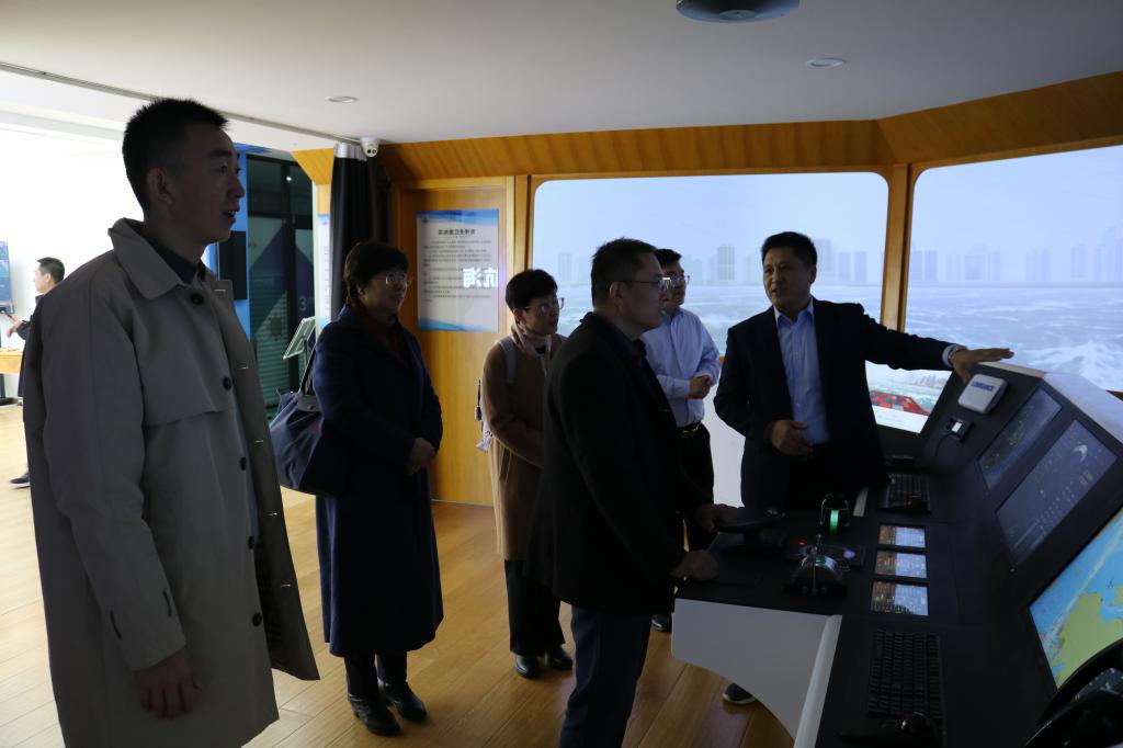在校长王敬良、执行校长徐立清、副校长吕明的陪同下,济南大学管理科学与工程学院党委书记王勇一行还实地参观了航海仿真实训基地、海洋能实训基地、国际海洋工程培训中心、航空实训基地等。