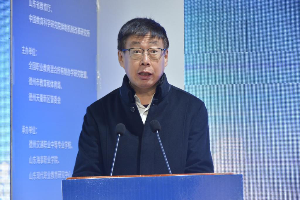德州交通职业中等专业学校、潍坊市教育局、京东集团股份有限公司、苏州工业园区服务外包职业学院、山东药品食品职业学院、岳阳职业技术学院、临沂职业学院、苏鲁豫皖高职教育集团、云南机电职业技术学院、胶州市职业教育中心等10家单位分别结合混合所有制办学实践在会上进行了相关经验交流。
