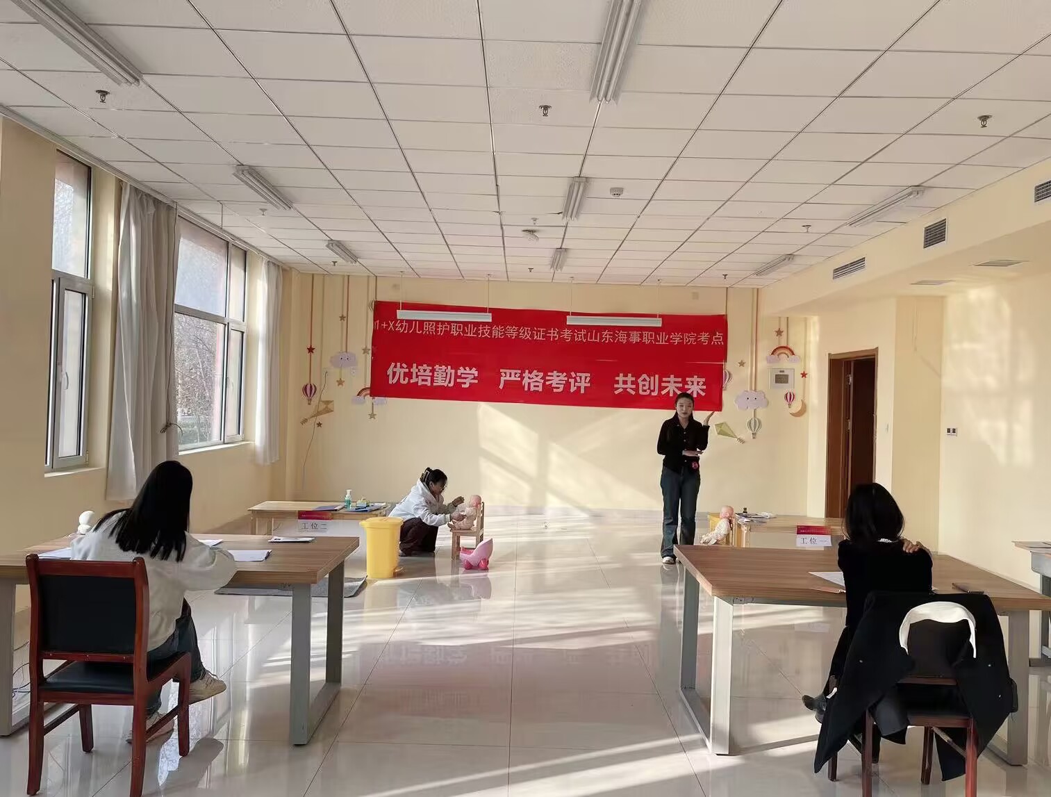 为贯彻落实国务院《国家职业教育改革实施方案》和教育部“1+X”证书制度试点工作,对接“岗—课—赛—证”人才培养模式,12月9日,我校“1+X幼儿照护职业技能等级证书(中级)”考试工作如期举行,来自健康管理学院婴幼儿托育服务与管理专业共41名学生参加考试。