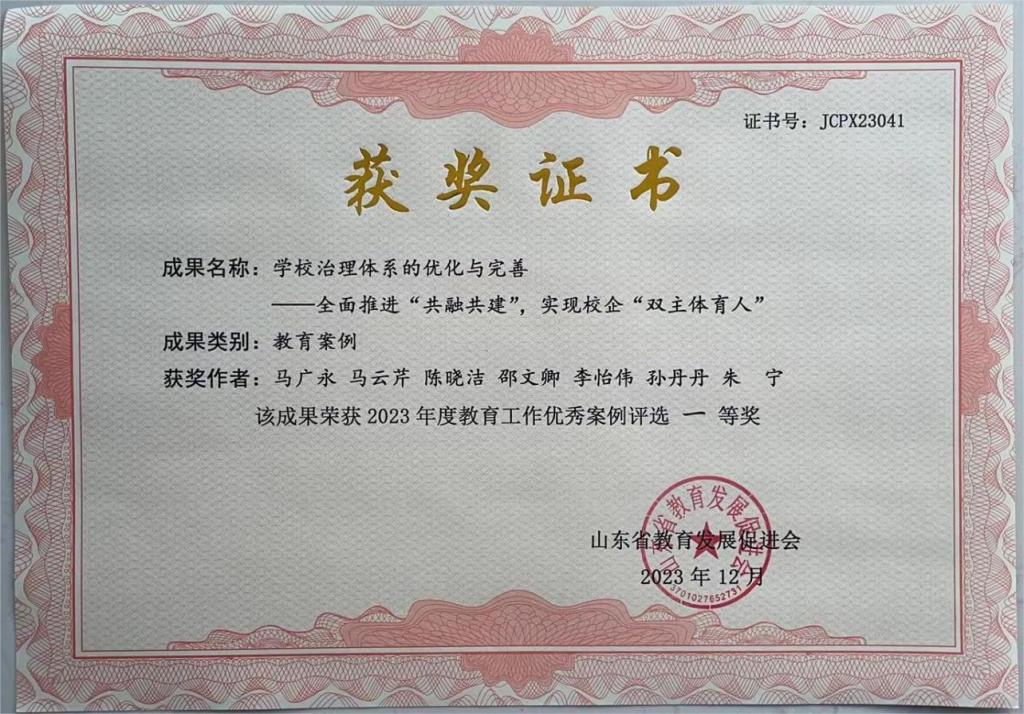 近日,山东省教育发展促进会授予我校“教育科研基地”荣誉称号,同时,我校推选的4项教育工作案例成功入选“2023年度教育成果优秀案例”。我校马广永老师主持的《学校治理体系的优化与完善——全面推进“共融共建”,实现校企“双主体育人”》和朱妮妮老师主持的《产教融合、虚实结合、八化联动:高职国际邮轮乘务管理专业<英语>课程教学模式的创新与实践》荣获一等奖;尹晶莹老师主持的《打造讲好红色故事的<模拟导游>高效课堂》和段畅老师主持的《基于“岗课证融合、教学做一体”—以<维生素D缺乏性佝偻病>教学为例》荣获二等奖。此次获奖标志着我校在教育科研领域迈出了重要的一步。