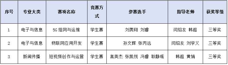 近日,第十六届山东省职业院校技能大赛获奖名单公示,我校电商学院“5G组网与运维”“物联网应用与开发”“短视频创作与运营”三个参赛项目均获山东省职业院校技能大赛三等奖。