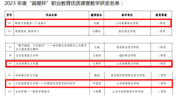 近日,山东省职业技术教育学会发布了2023年度职业教育优秀教学案例和2023年度“超星杯”职业教育优质课堂教学获奖名单。