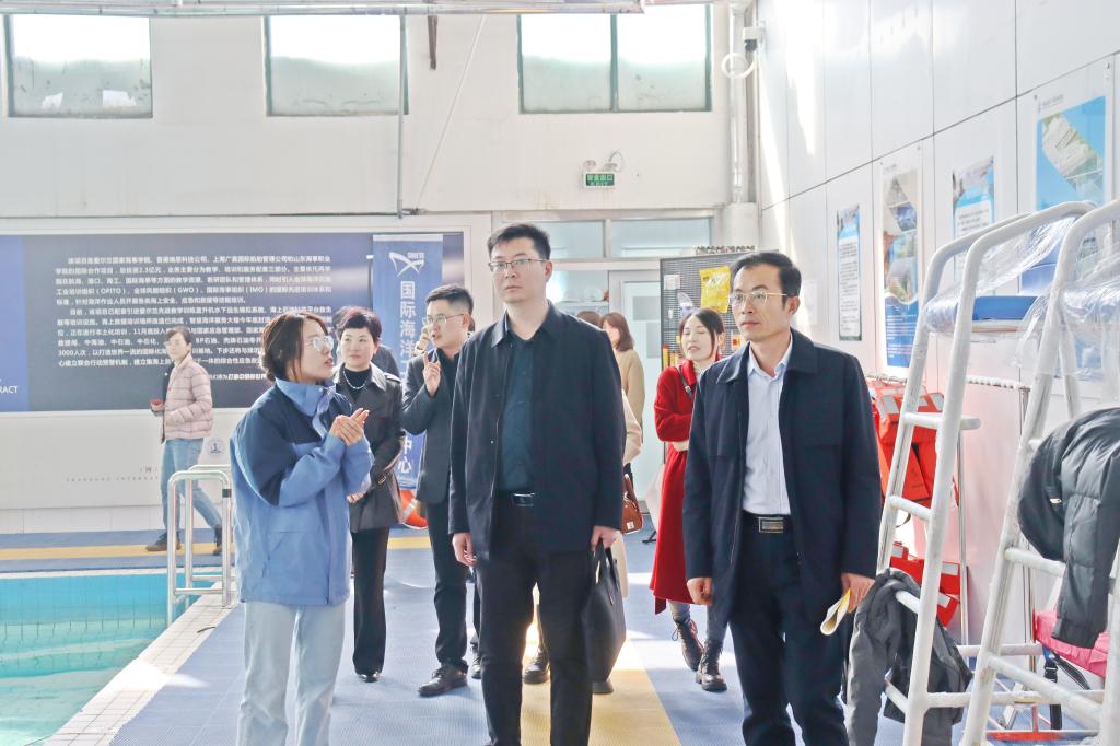 考察团一行实地参观了国际海洋工程实训基地、博能新能源电力技术中心、邮轮运营服务虚拟仿真实训基地、航海虚拟仿真实训基地、京东数字商务产业学院基地。考察过程中,校长助理王德帅围绕学校混合所有制办学发展历程、产教融合体系建设、混合所有制办学内涵等进行了重点介绍。双方聚焦校企合作路径、人才培养方式、产业学院建设等进行了深入探讨。