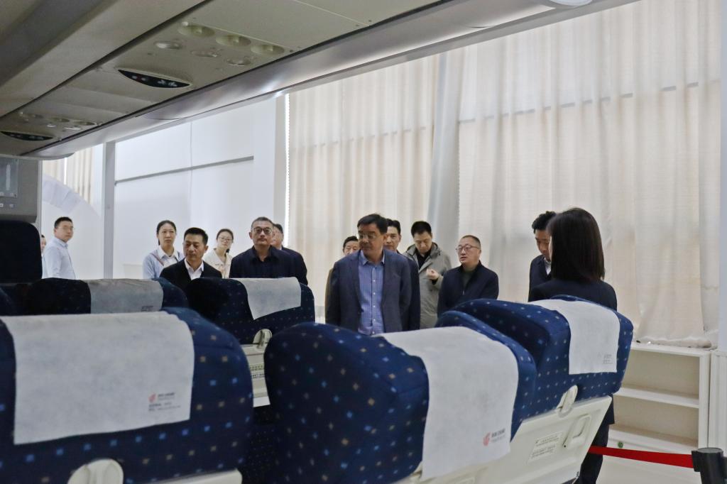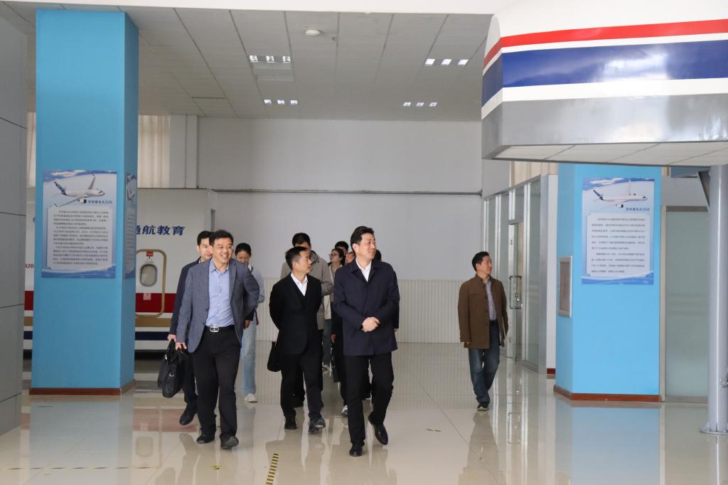座谈后,考察团一行在党政办公室副主任杨柳青的陪同下实地参观考察了学校航空实训基地、博能新能源电力技术中心和邮轮运营服务虚拟仿真实训基地。