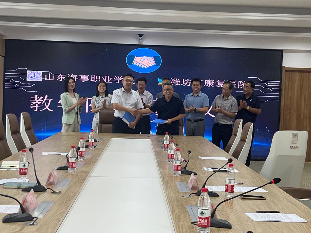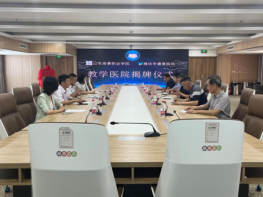 6月17日下午,我校与潍坊市康复医院举行共建教学医院签约暨揭牌仪式。潍坊市康复医院院长隋洪林、副院长梁鹏、各科室主任负责人,我校代理校长徐立清、健康管理学院院长冯小红等有关人员出席仪式,本次签约揭牌仪式由康复医院副院长梁鹏主持。
