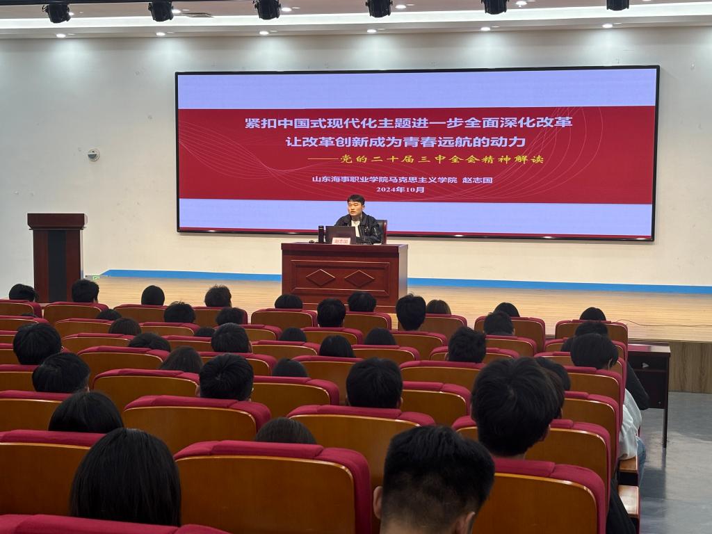 10月23日,学校在行政楼报告厅举行“青马工程”暨学生骨干培训班学习贯彻党的二十届三中全会精神宣讲报告会,各班班长、团支书300余人参加,马克思主义学院教师赵志国作宣讲报告。