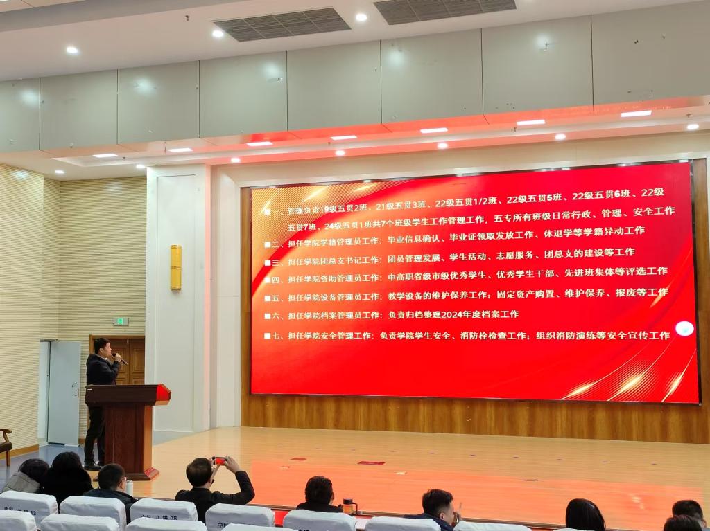 为深入贯彻落实全国高校思想政治工作会议精神,切实加强高校辅导员队伍建设,树立一批辅导员先进典型。近日,我校在图书馆报告厅开展2024年度“金牌辅导员”评选活动。通过选树典型发挥榜样作用,激励广大辅导员认真履行立德树人的崇高使命,不断提升大学生思想政治教育工作质量。