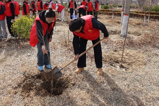 同学们分成若干小组,有条不紊地领取植树工具和树苗,迅速投入到植树劳动中。现场,同学们分工协作,配合默契。大家齐心协力,将一株株树苗稳稳地栽种在土地里。经过同学们的辛勤劳动,50余株树苗在人工湖旁“安家落户”,焕发出勃勃生机。这些新栽的树苗不仅为校园增添了一道亮丽的风景线,也为校园生态环境建设注入了新的活力。
