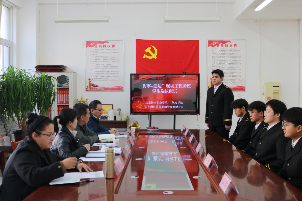 为深化校企合作、产教融合,探索创新人才培养模式,3月19日下午,航海学院携手山东通达国际船舶管理有限公司联合开展了"海事一通达"现场工程师班学生选拔面试活动。