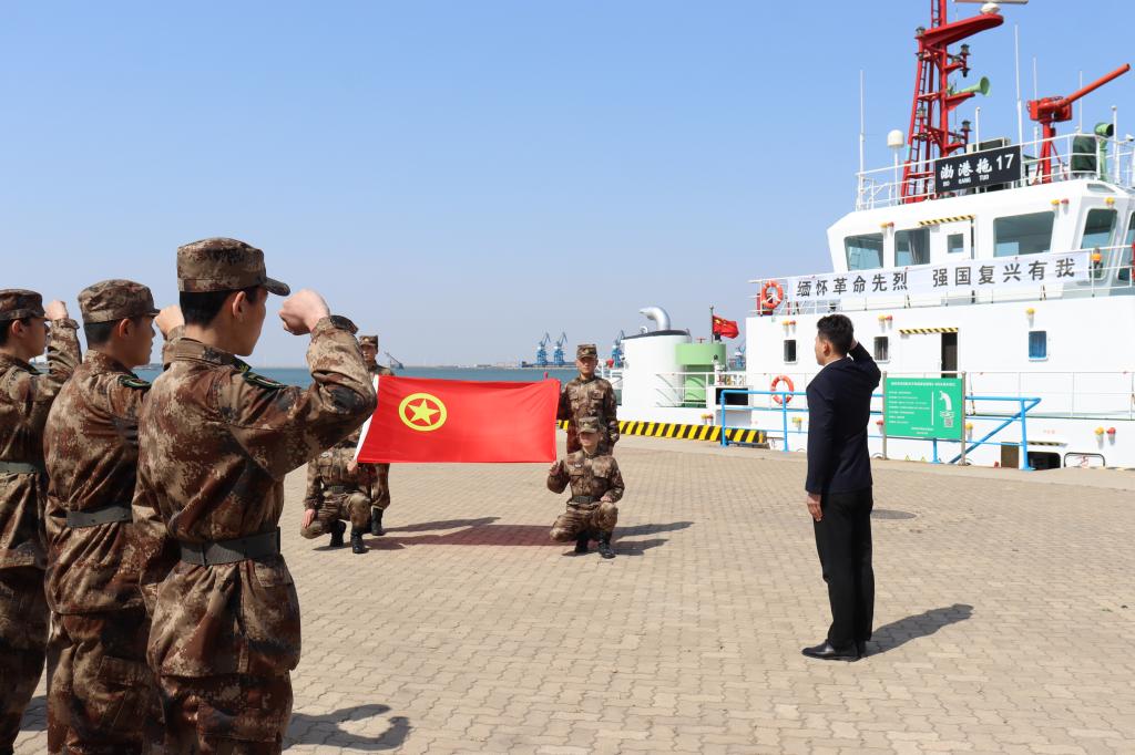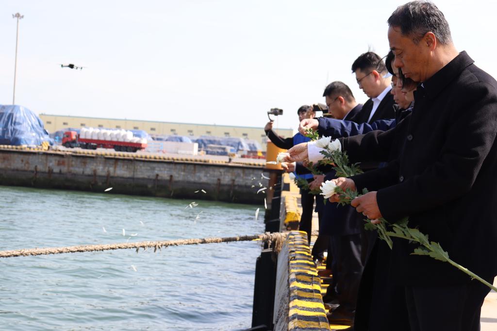 4月3日上午10时,学校联合潍坊海事局、山东省港口集团潍坊港有限公司在潍坊海事工作船码头庄重举行“缅怀革命先烈,强国复兴有我”海祭活动。潍坊海事局政委、党委副书记王勇和潍坊市青少年发展服务中心主任王海燕、潍坊滨海开发区党群工作部副部长肖迪、潍坊港区海事处党支部书记李志、潍坊港区集装箱码头有限公司副总经理谢术龙、潍坊港集团有限公司副总经理李霞,以及山东海事职业学院党委副书记、校长徐立清,党委委员、副校长宋志刚等领导出席活动。