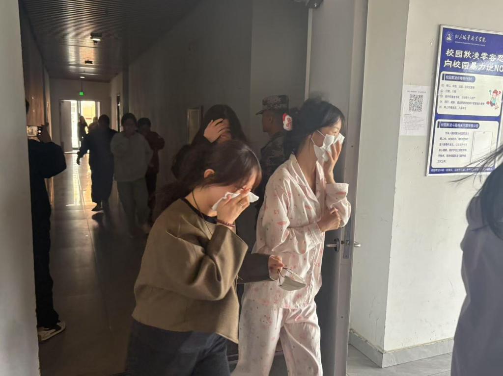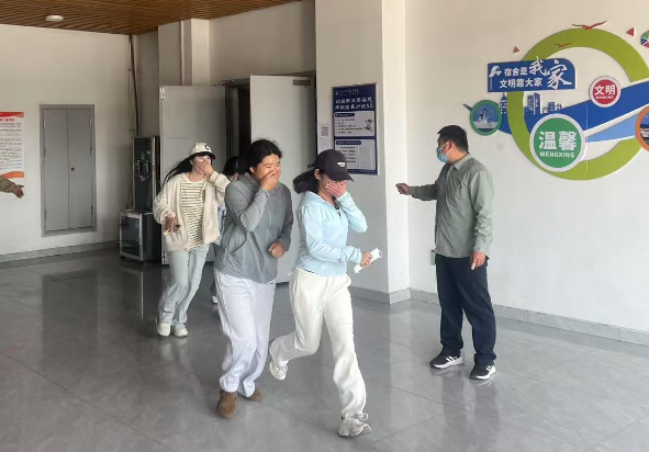 随着警报声响起,应急疏散演练正式开始。各小组工作人员迅速到达指定岗位,引导学生快速、有序地按照预定的疏散路线撤离宿舍。学生们弯腰低姿,用湿毛巾捂住口鼻,紧张而不慌乱地从宿舍撤离,有序向公寓前广场等安全区域疏散。整个疏散过程迅速、有序,达到了预期效果。