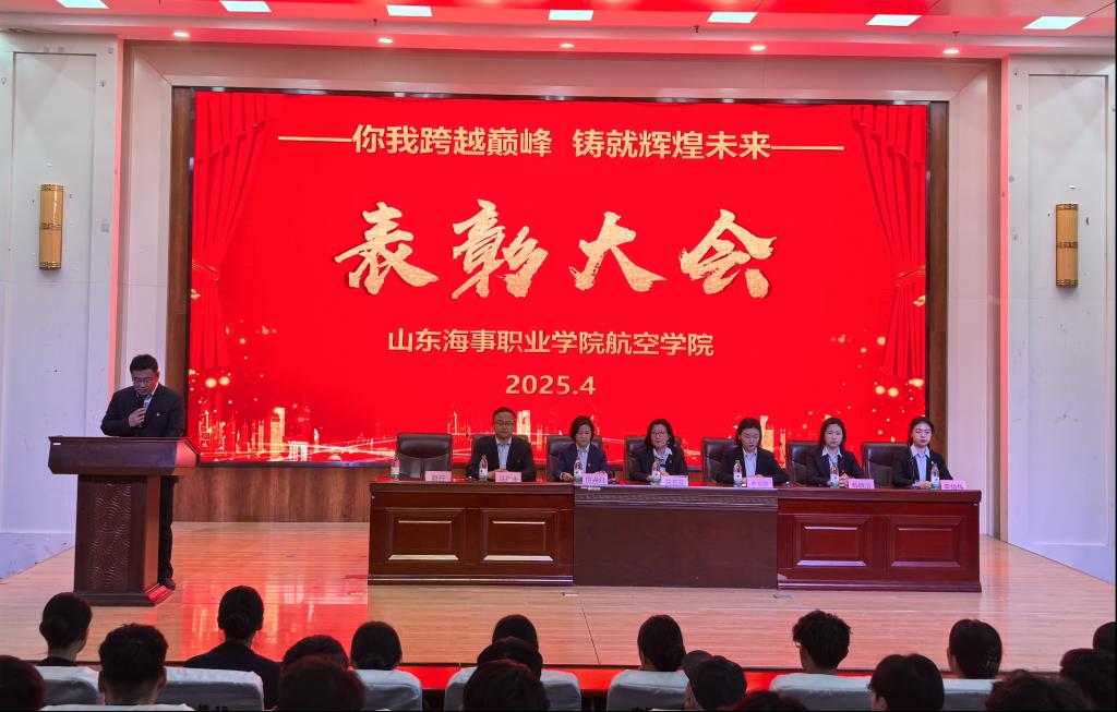 近日,航空学院在学校报告厅召开 2023 级实习动员暨表彰大会,近 500 名 2023 级学生及全体教师参会。航空学院副院长赵行主持大会,副院长、副书记田兴红宣读表彰决定。