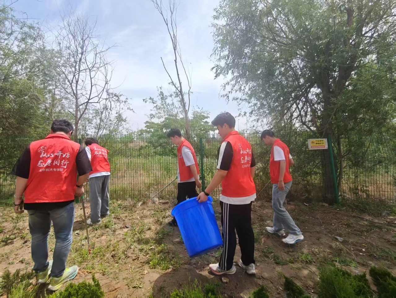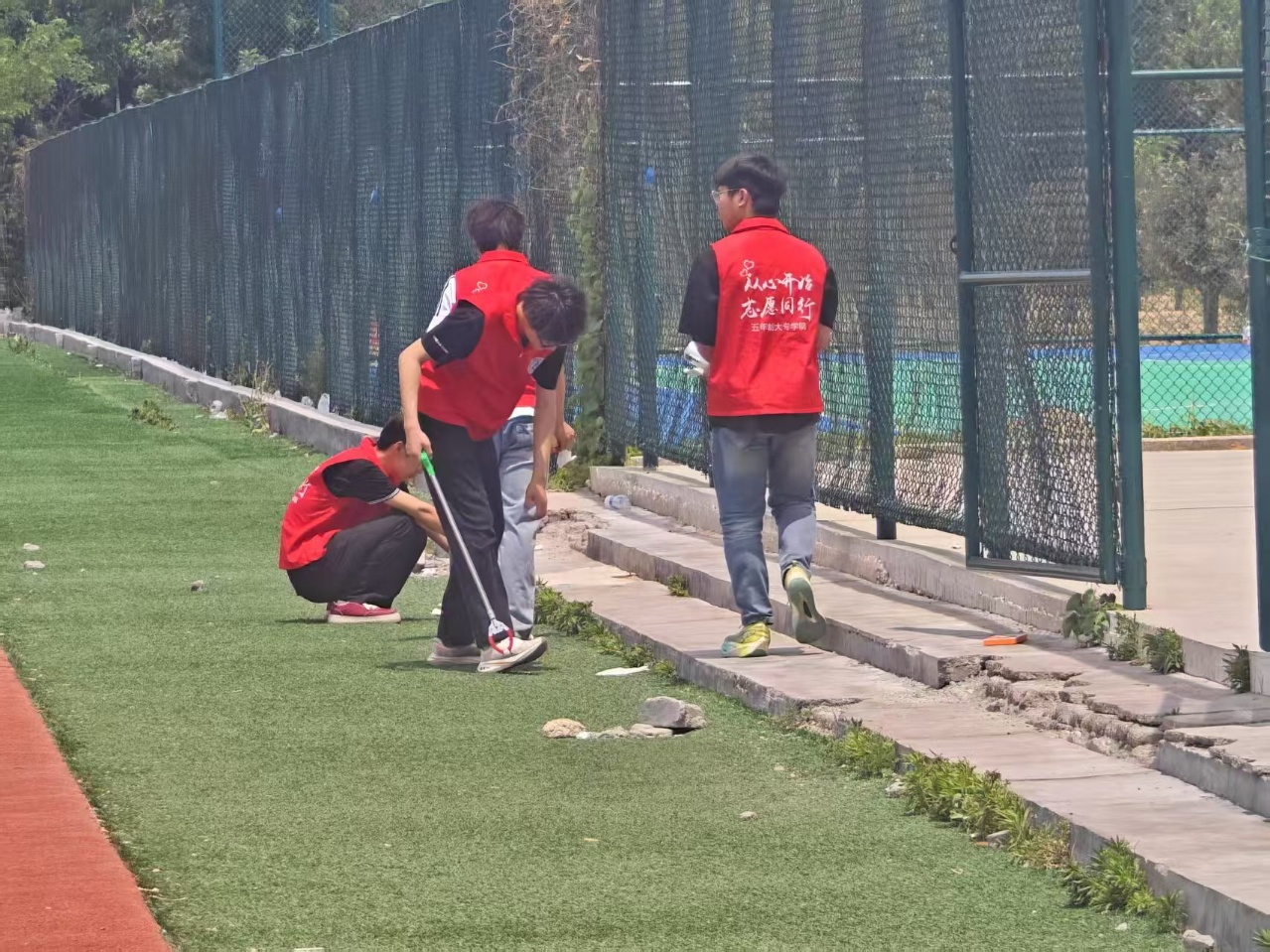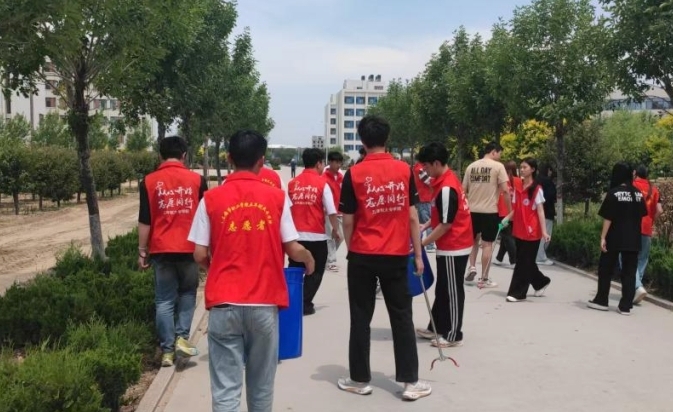活动中,学生志愿者在校园内开展垃圾清理与分类实践。他们身穿红色马甲,手持环保垃圾袋和分类工具,以小组为单位对校园教学区、生活区、停车场等公共区域展开“地毯式”清洁。大家分工协作,仔细捡拾散落的纸屑、塑料瓶等垃圾。积极向过往的同学宣传环保知识,倡导“垃圾不落地”的好习惯。