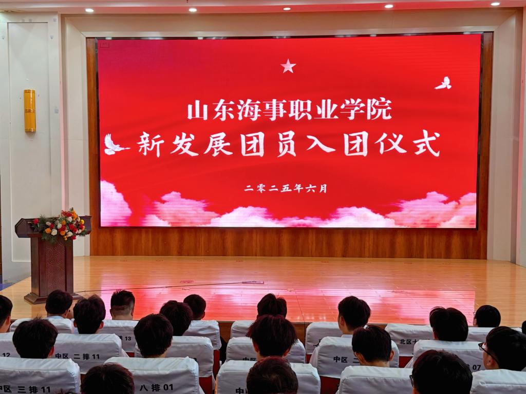 6月10日,我校在综合楼报告厅举行2025年新团员入团仪式。山东海事职业学院党委委员、副校长宋志刚,各二级学院团总支书记,2025年新发展团员代表共400余人参加入团仪式。
