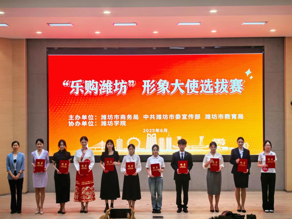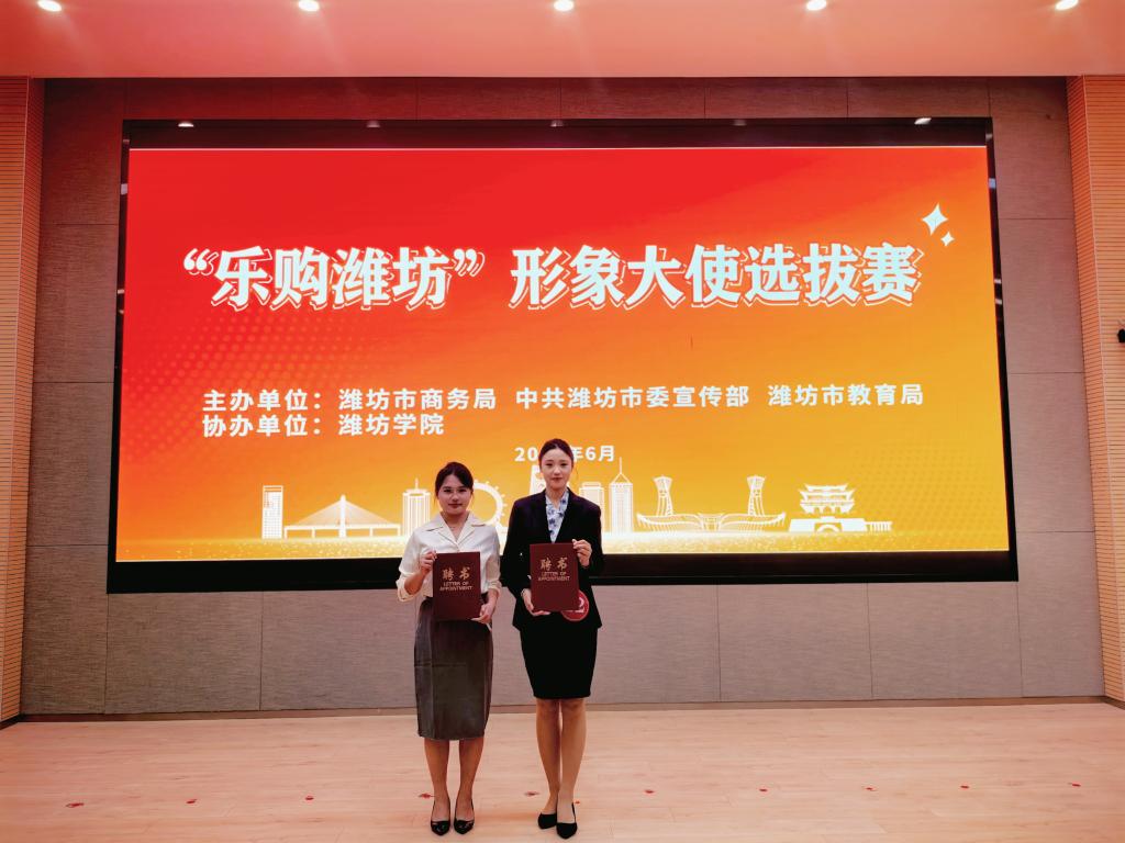 6月20日,"乐购潍坊"形象大使选拔赛在潍坊学院圆满落幕。经过激烈角逐,我校航空学院2023级民航安全技术管理专业刘宝乐同学、健康管理学院2024级健康管理专业李婷婷同学凭借过硬的专业素养、出色的语言表达能力和敏捷的临场应变能力,从25名驻潍高校选手中脱颖而出,成功入选十强,并获潍坊市商务局正式聘任为"乐购潍坊"形象大使。
