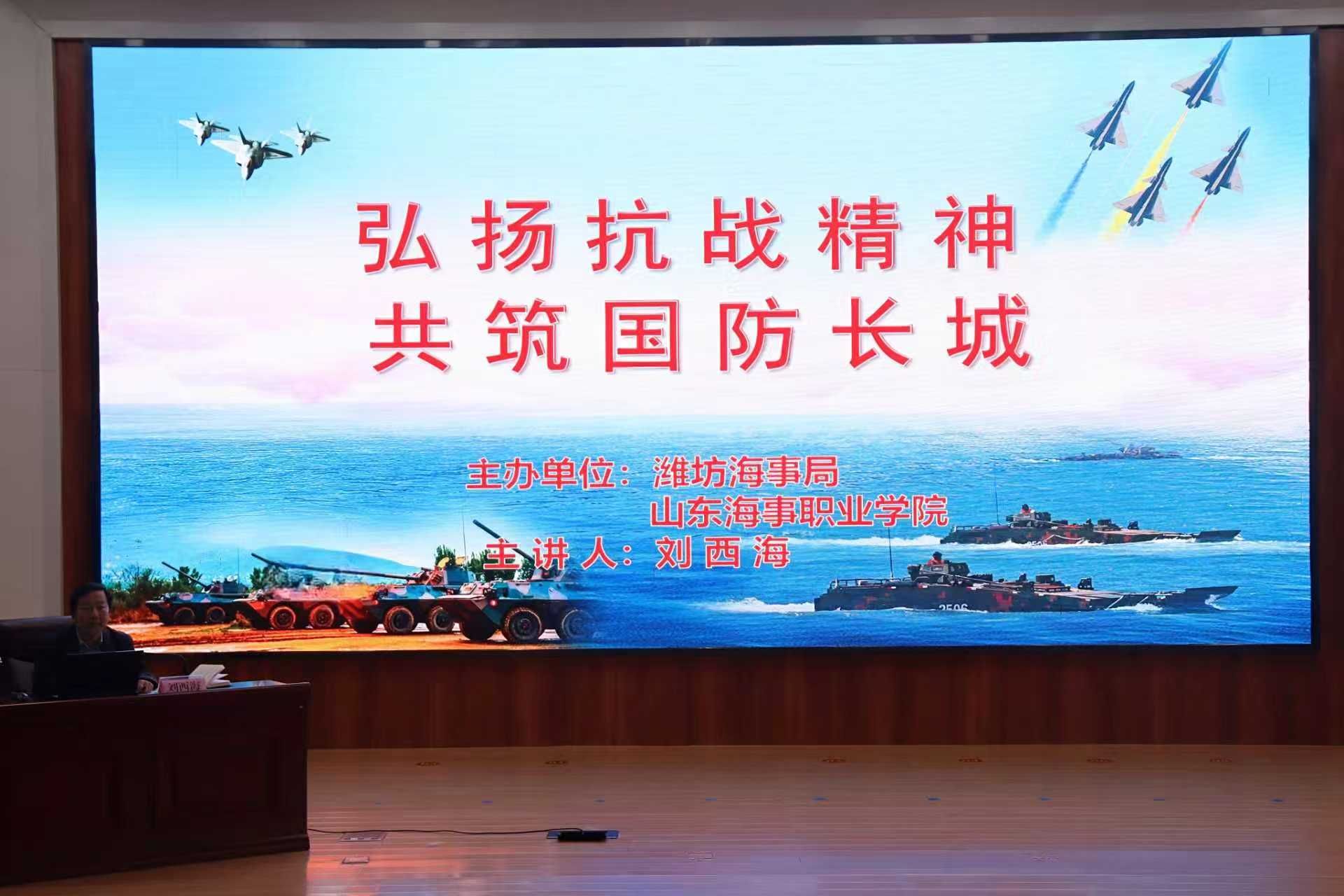 为深化全民国防教育,引导广大师生铭记历史、强化国防观念,10月22日,山东海事职业学院举办专题讲座,特邀潍坊市委宣传部原二级调研员刘西海作主题讲座。