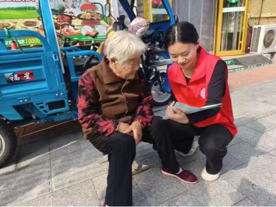 活动现场,志愿者们首先为老人们送上精心准备的 “健康大礼包”,礼包内的草本安神香囊、活血通络足浴包,精准贴合老年人健康需求。志愿者们耐心细致地讲解使用方法,一句句节日祝福让老人们脸上洋溢着幸福笑容。随后,志愿者分组开展入户走访,重点慰问社区老党员干部与孤寡老人。走访中,志愿者们认真聆听老党员的峥嵘岁月故事,关切询问老人们的生活起居与健康状况,送上米面油等生活物资。同时,志愿者逐一排查居家用电用气安全隐患,动手打扫居室卫生,既提供物质支持,更给予贴心精神抚慰,让独居老人不再孤单。此外,志愿者还走上街头,向过往老人发放宣传资料,结合真实案例剖析养老投资、保健品推销等常见骗局,叮嘱老人们 “不听、不信、不转账”,为老人们的晚年生活筑牢安全防线。