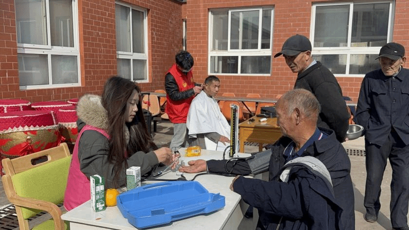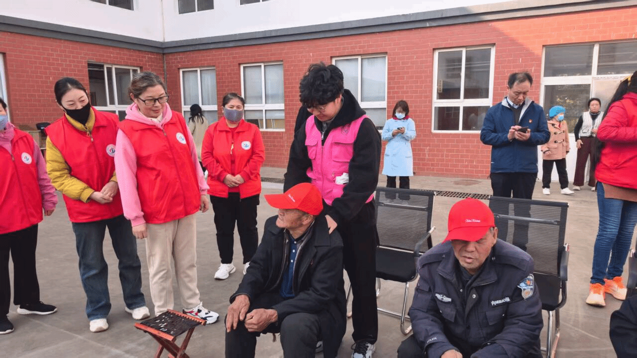活动现场,志愿者们带来精彩的舞鼓表演,节奏欢快、气氛热烈。老人们跟随节拍拍手哼唱,脸上洋溢着幸福的笑容,掌声、笑声不绝于耳。在服务环节,志愿者们分组为老人提供专业的理疗按摩和血压测量服务,耐心讲解健康知识,细心叮嘱日常注意事项,以专业与温情守护老人身心健康。
