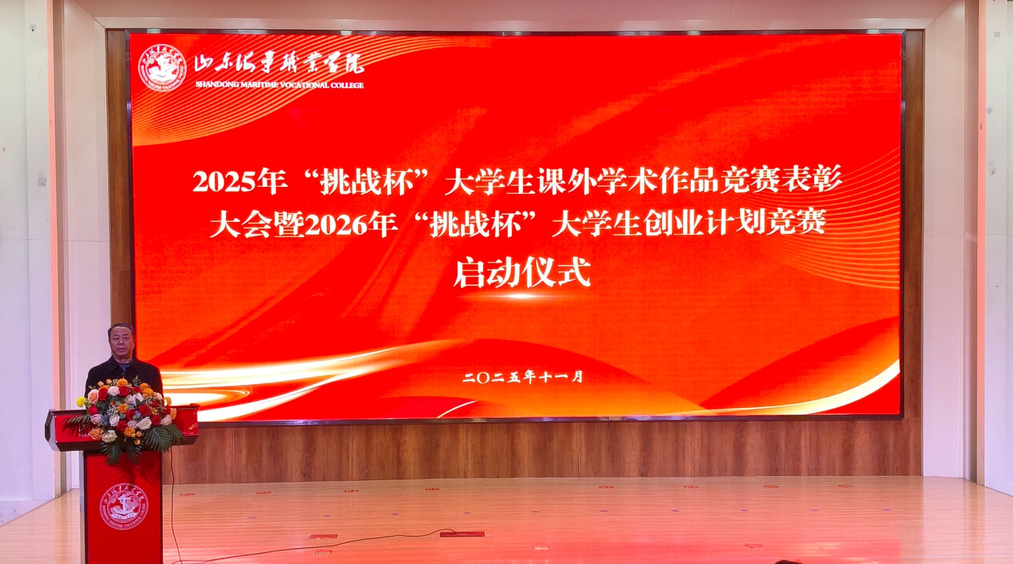 11月13日,学校2025年“挑战杯”大学生课外学术作品竞赛表彰大会暨2026年“挑战杯”大学生创业计划竞赛启动仪式在综合楼报告厅隆重举行。学校副校长宋志刚、学生工作处处长齐万昌、团委书记刁宁及各学院团总支书记出席大会,与全校师生共同见证荣耀时刻,共绘科创育人新蓝图。