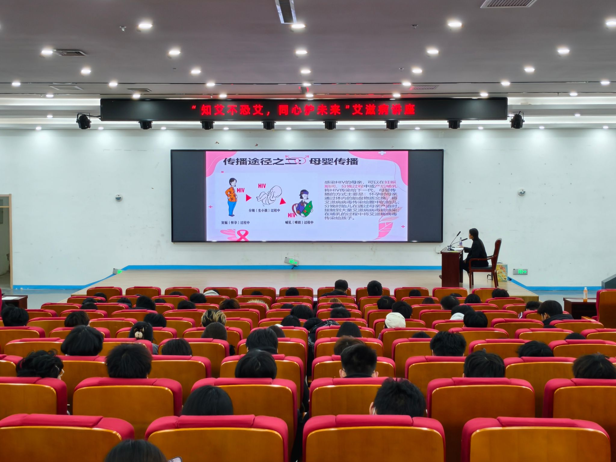 12月4日下午,我校“知艾不恐艾 同心护未来”主题讲座在报告厅顺利举办。本次活动特邀滨海区社会事业服务局疾控科科员袁睿担任主讲,二百余名师生参加。