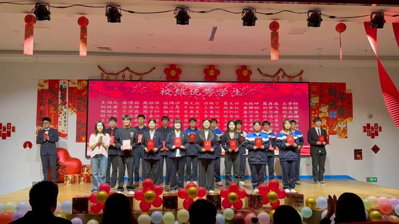 晚会现场华灯璀璨,暖意融融。歌曲演唱、舞蹈表演、器乐合奏、情景短剧等多元节目轮番上演,师生们以饱满的热情、昂扬的姿态,展现出朝气蓬勃的青春风采与锐意进取的时代精神,将对新年的憧憬与期许融入每一个精彩瞬间。幸运抽奖环节惊喜连连,欢呼声、喝彩声此起彼伏,让现场氛围持续升温。随后的颁奖环节庄重热烈,学院对2025—2026学年第一学期涌现出的“校级优秀学生”“校级优秀学生干部”“校级先进班集体”等先进个人与集体进行集中表彰,榜样的力量激励着在场师生奋勇争先、砥砺前行。
