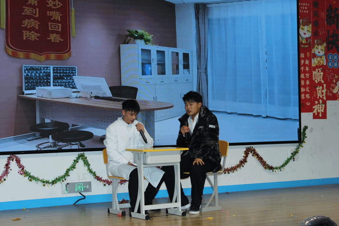 晚会现场灯光璀璨,气氛热烈。由学院各专业学生、学生社团精心编排的节目轮番上演,形式多样,精彩纷呈。一场激昂澎湃的开场舞狮迅速点燃了全场热情;健康服务与管理专业学生自编自导的幽默小品《网络“深医”》,以风趣的方式科普健康知识,笑声掌声不断。此外,充满活力的现代舞、深情款款的歌曲串烧、韵味十足的器乐合奏等节目,充分展示了学子们多才多艺、全面发展的青春风采。晚会中还穿插了激动人心的互动游戏,现场高潮迭起,欢声雷动。