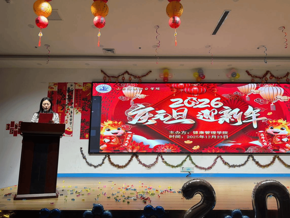 欢声笑语辞旧岁,青春激扬迎新年。12月23日,我校健康管理学院“健康逐梦,青春飞扬”2026年元旦联欢晚会在校园北区小礼堂隆重举行。学院党政领导、教师代表与学院学生欢聚一堂,共同庆祝新年的到来。