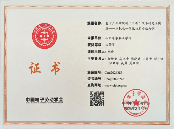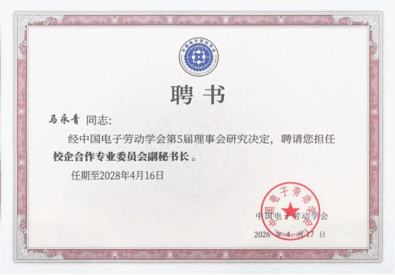 我校海洋能源学院院长马永青教授受聘担任中国电子劳动学会校企合作专业委员会副秘书长。
