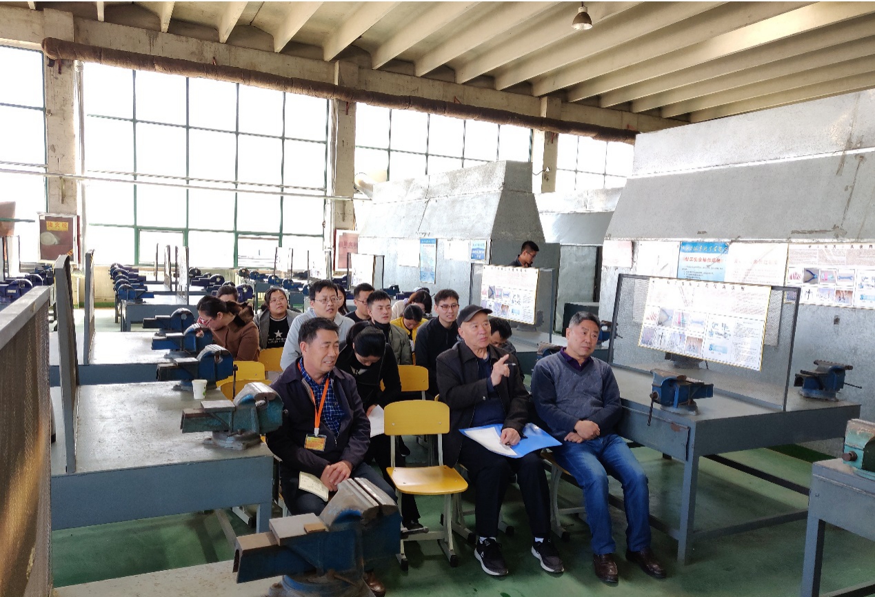 公开课上,张晓建老师为在座教师现场详细讲解了钳工工作的主要操作过程。张老师在课堂中指出:“一些采用机械方法不适宜或不能解决的加工,都可由钳工来完成,比如零件加工过程中的划线、精密加工以及检验及修配等”。课堂现场,李振鹏副院长对张晓建老师的讲解现场提出评价,并指出课堂讲解过程中存在的疑惑与不足,机电与信息工程学院孙旭清院长针对听课教师现场提出的问题,现场为教师演示了钳工工作操作流程。接下来,于同富老师为听课教师讲解了电焊的主要操作过程与注意事项和安全事故的应急处置方法,同时为大家演示了焊钳、焊接电缆等工具的操作方法以及干粉灭火器的使用方法。公开课最后,教务处处长张庆会针对教师如何指导学生在实训课过程中更好地操作电焊进行了要点性总结,对课堂上有可能出现的安全事故与注意事项进行了进一步讲解补充。