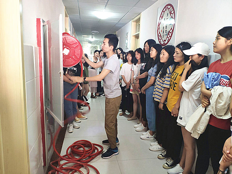 此次消防演练的主要内容是模拟发生火灾后学生自救逃生场景,通过现场演练的方式使学生熟悉掌握火灾后应急逃生自救的正确步骤流程。在国际邮轮与旅游学院院长助理崔海宁老师的指挥下,同学们迅速有序地沿预先制定的应急逃生路线从宿舍跑出,到达制定应急集合点集合。之后崔海宁老师用现场演示操作的方式为大家详细讲解了灭火器的正确使用方法和消防知识。