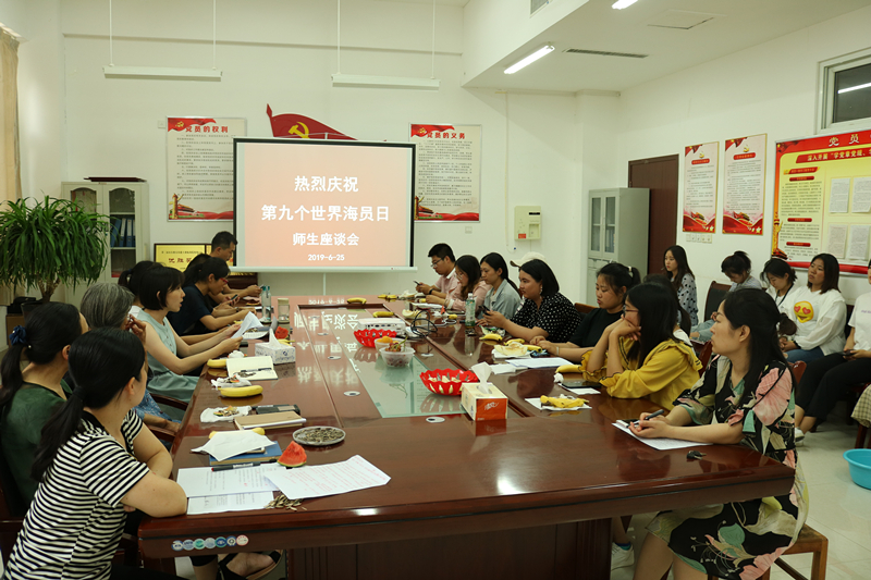 近日,在第九个世界海员日来临之际,为契合今年“船上工作性别平等”的主题,航海学院组织学院全体女生在会议室召开师生座谈,共同庆祝这个属于海员自己的节日。此次活动由航海学院院长助理李晓伟主持,航海学院教研部主任和全体女教师共同参加了本次座谈。