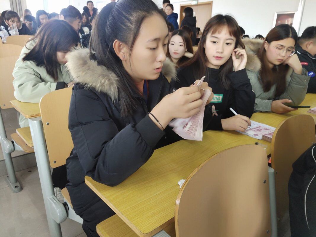 赛前,港航管理学院院长助理程美旺老师发言并宣布比赛相关的规则与流程。一声令下,比赛正式开始,每位参赛学生点钞的方法及手势都各不相同,但点钞的速度都非比寻常,安静的教室里只听见点钞纸滑过指尖的沙沙声,选手们飞速地挪动着手指,全神贯注于手中的纸钞,时间一分一秒过去,本次点钞大赛初赛在一场又一场激烈、紧张的气氛中落下帷幕,取得了圆满效果。