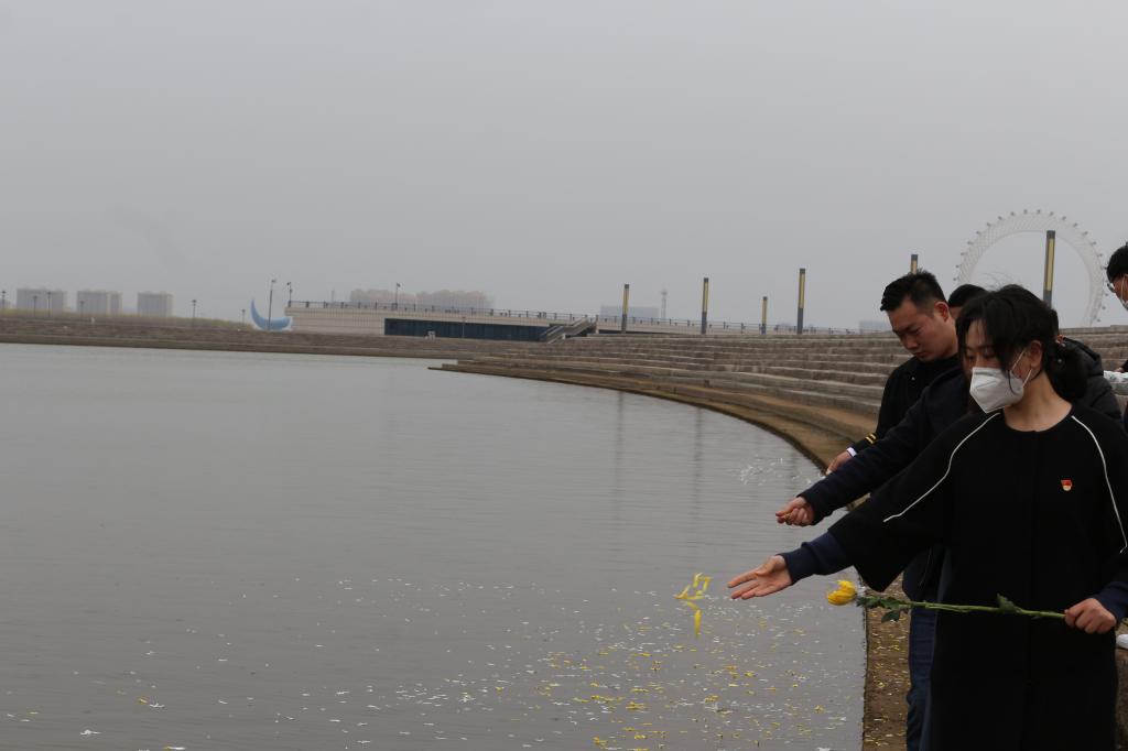 默哀结束,学生代表魏兆帅带领学生进行默哀宣誓,“我立志做一名合格的大学生,学习和弘扬革命先辈的爱国主义精神,自强不息,团结友爱。从现在做起,从身边做起,从小事做起,为祖国,为人民,做出自己的贡献”。宣誓完成后,团委书记李雪讲话,她强调:“作为新世纪的接班人,我们将继承革命先烈的遗志,努力学习,奋发图强!今天的幸福美好生活是这无数先烈对共产主义的执著追求、前仆后继的英勇牺牲换来的,为此我们应该懂得肩负的历史和使命!随后,学子们有序的将手中的鲜花洒向水面,向海上英魂致敬,花瓣载盛着学子感恩革命先烈的浓浓情意,随浪花流向远洋。