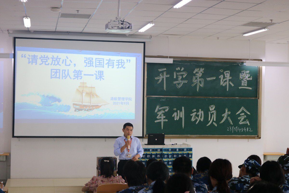 新学期,新气象。9月6日港航管理学院在4312教室召开“开学第一课暨军训动员大会”,学院教师、辅导员及全体21级新生参加了本次大会。