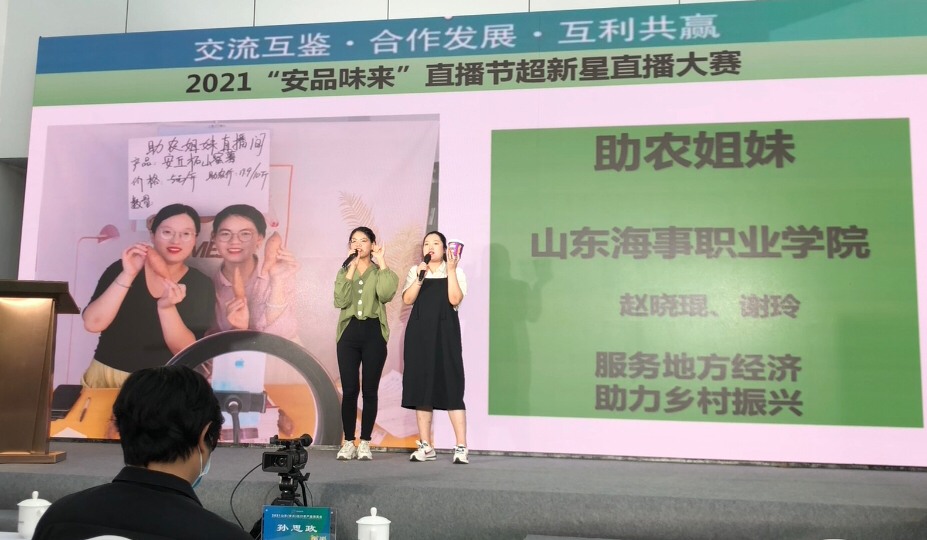 2021“安品味来”直播节超新星直播大赛金牌主播奖决赛采取全程现场直播的方式,评委根据选手现场表现进行打分,最终在公证处的见证下确定了本次大赛获奖人员名单。最终,电商学院两位参赛老师获得了“最佳女主播”奖。